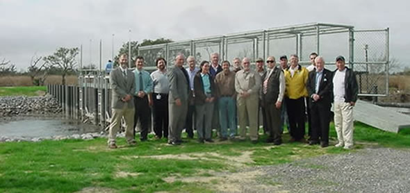| Department of Natural Resources, National Marine Fisheries Services, and St. Bernard Parish representatives participated in a recent dedication ceremony of the Hopedale marsh project on January 6, 2005. | |