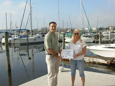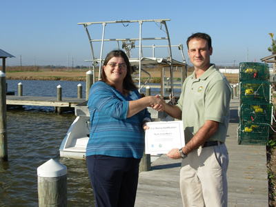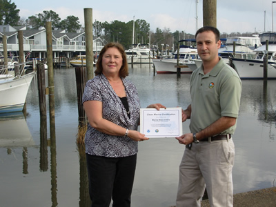 Clean Marina certification from DNR Coastal Program Manager Charles Reulet.