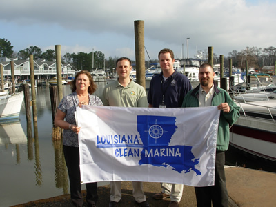 Louisiana’s Clean Marinas receive a certificate acknowledging their environmentally responsible actions, a special flag to fly on their property, authorization to use the Clean Marina logo at their place of business, on their letterhead and in advertising, along with public recognition.