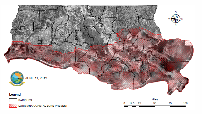 The inland boundary of the LA Coastal Zone was modified in the 2012 Regular Session of the Louisiana Legislature with the passage of House Bill 656 (Act 588) and became effective on June 7, 2012. The boundary changes are based on the recommendations of a science-based study conducted for and approved by the Coastal Protection and Restoration Authority (CPRA), in response to Senate Concurrent Resolution 60 of the 2009 Legislative Session.